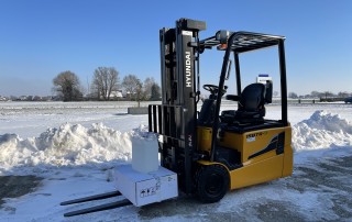 In de sneeuw leveren wij deze nieuwe Hyundai 15BTR-9 elektrische heftruck af bij een nieuwe relatie. Wij wensen de klant veel werkplezier toe met deze zeer mooie aanvulling. Benieuwd wat wij voor u kunnen betekenen [...]