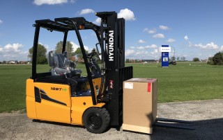 Vandaag leveren wij deze Hyundai 18BT-9, uitgevoerd in de nieuwe kleurstelling en met o.a. de volgende opties.  - Geïntegreerde side-shift + vorkversteller. - 3-delige luxe doorkijkmast. - Non-marking banden. - Led verlichting. - Blue-spot. [...]